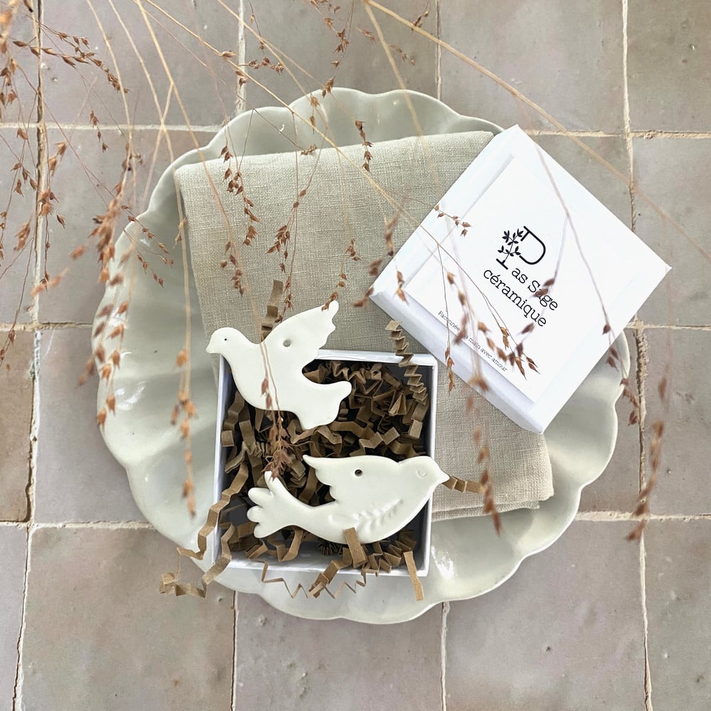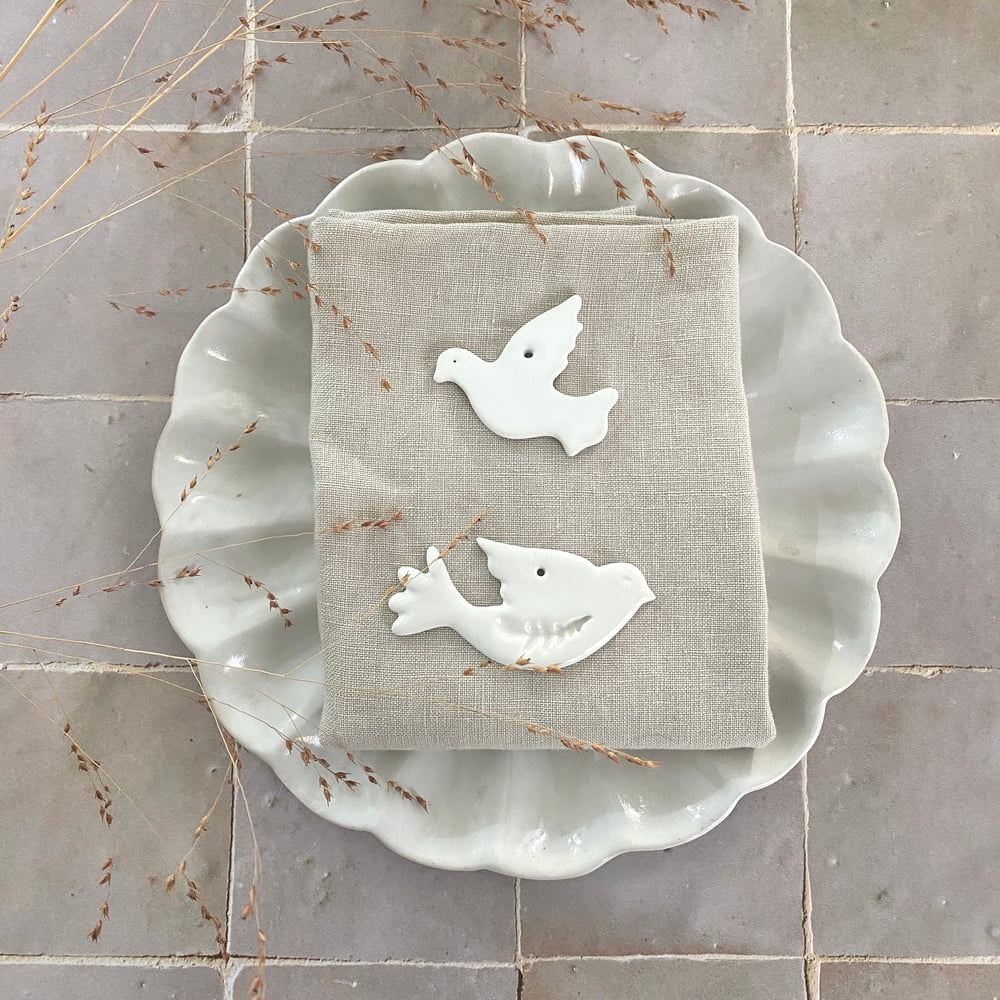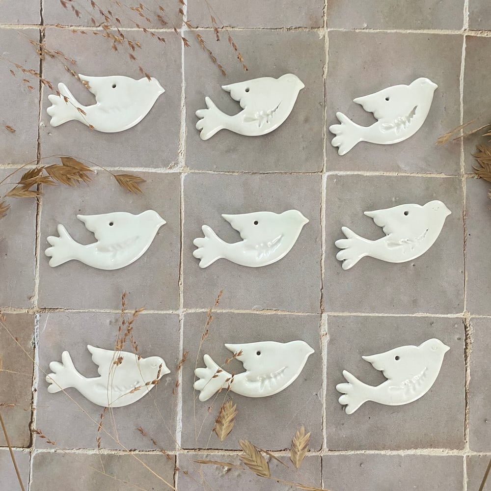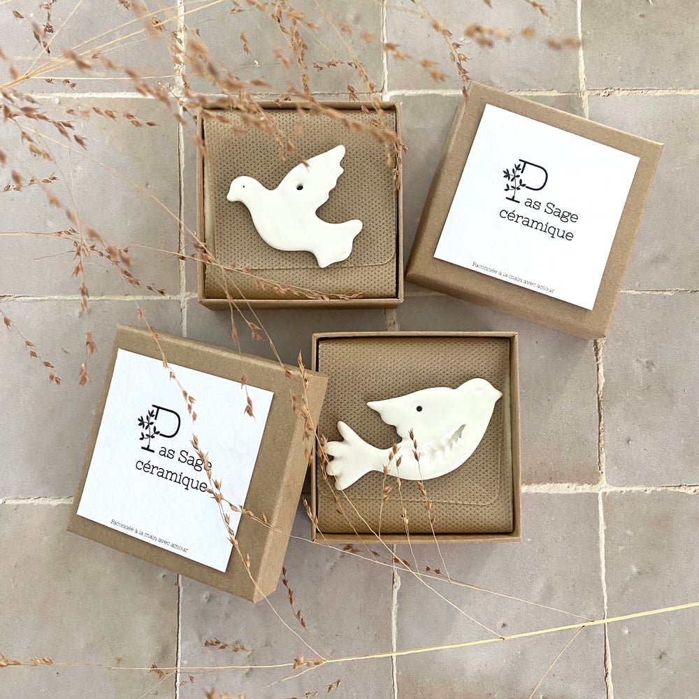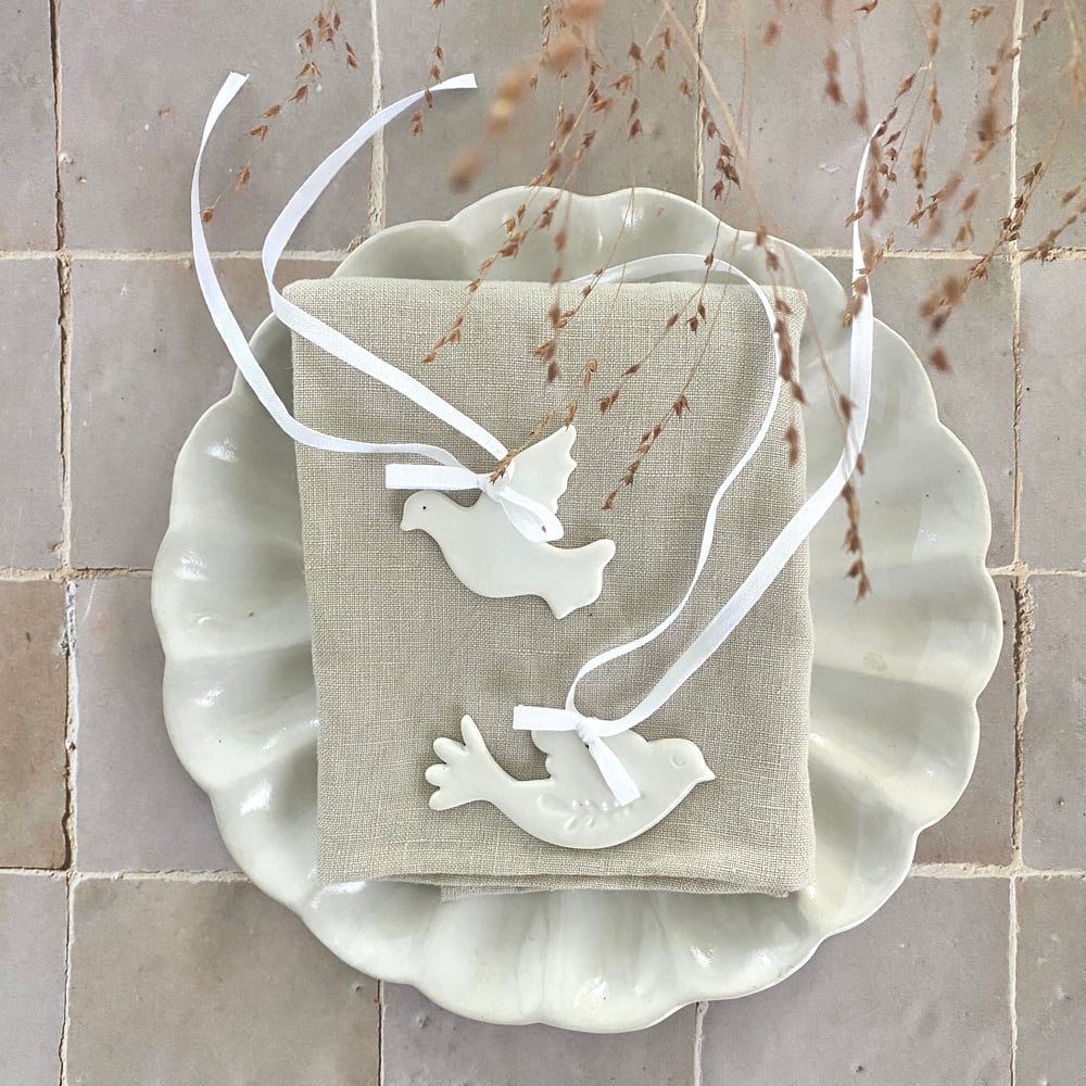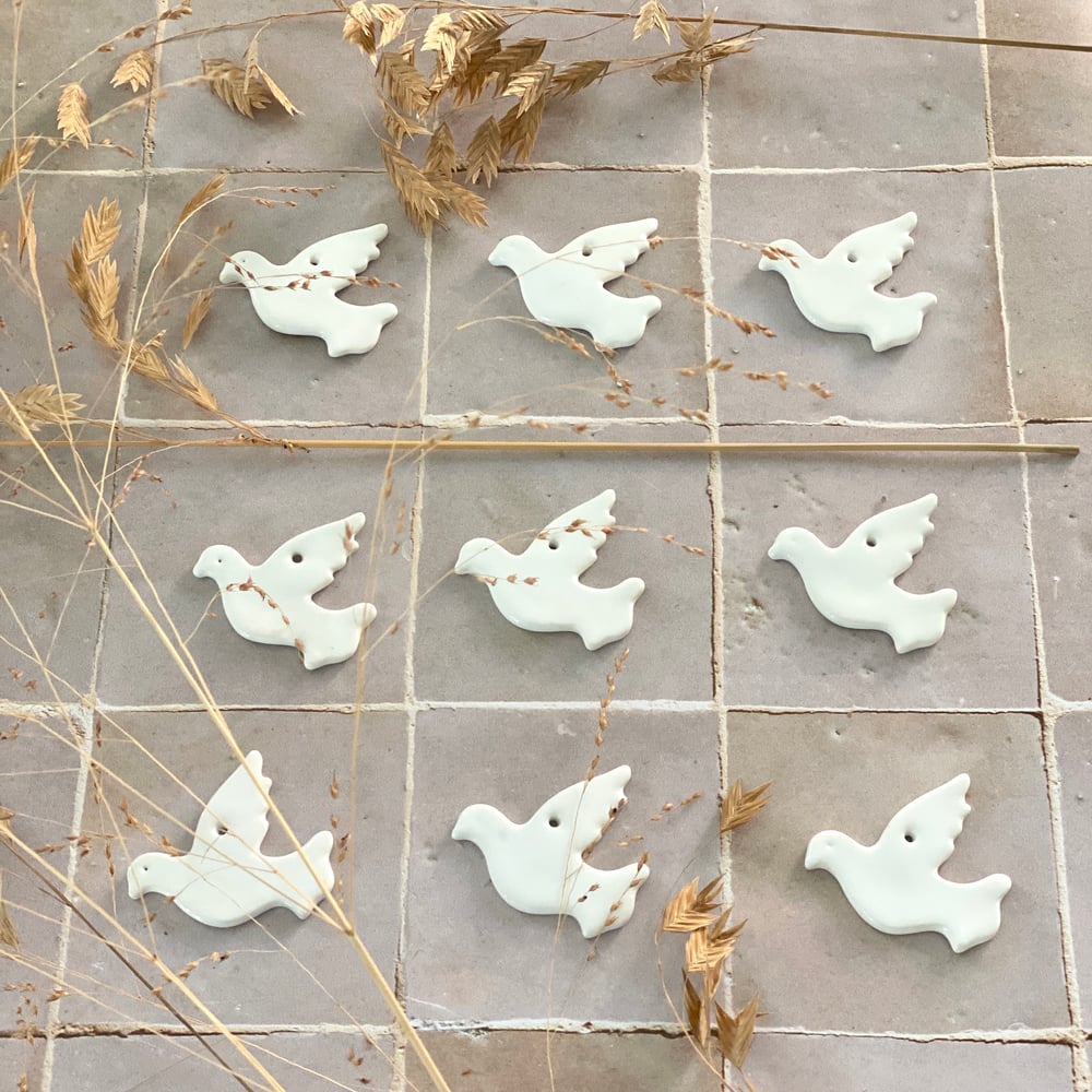 Colombe réalisée à la main en porcelaine émaillage blanc.